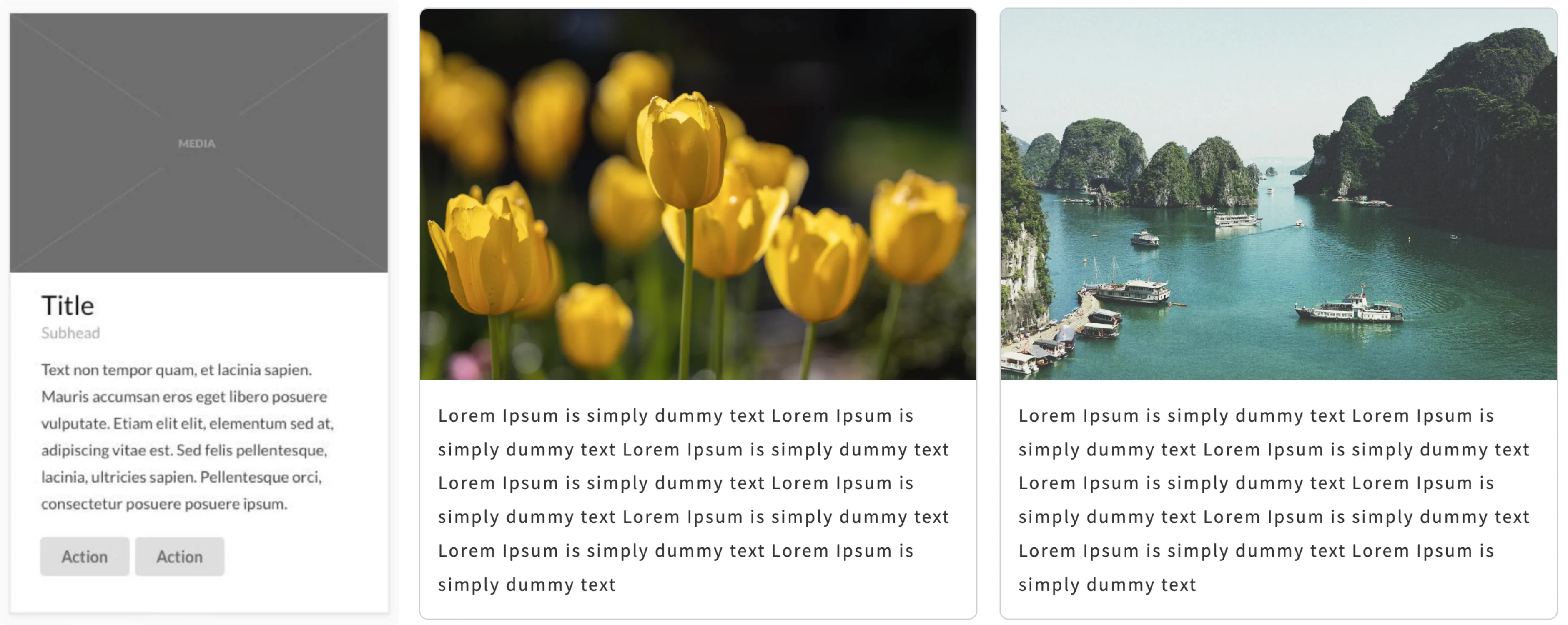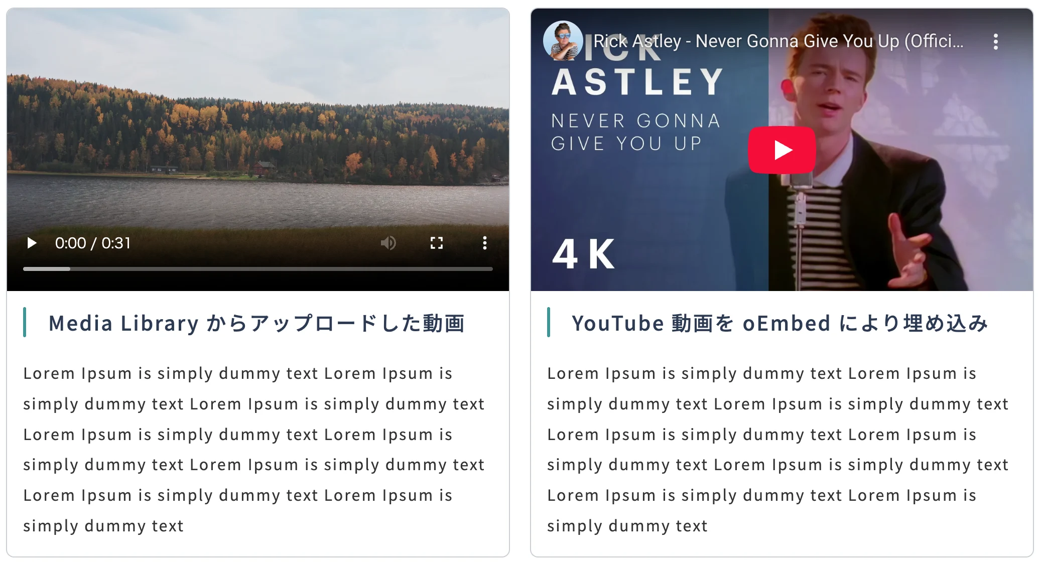 | Media Type | 各カードの先頭には、1種類のメディアを表示できます。 対応しているメディアタイプは以下の3種類です: Image : Media Library からアップロードした画像を表示します。 |