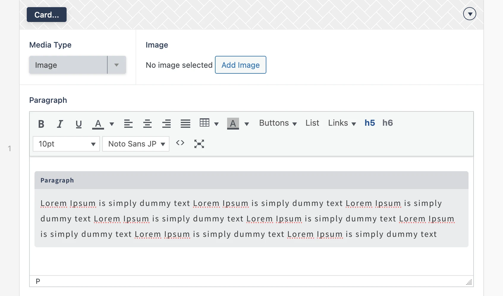 | Paragraph | カード内のテキストコンテンツは、WYSIWYG エディターを使用して作成します。 |